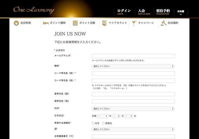 One Harmony公式ページより入会登録をします。※既にOne Harmony会員の方は、ステップ3に進んでください。