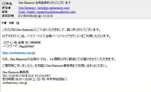 One Harmony 未入会の方はホテルで入会登録をして、会員番号を入手してください。