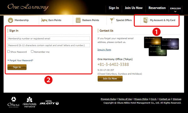 ❶ Click “My Account and My Card” on the right top of the page.