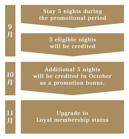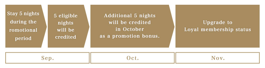 A member with 0 eligible nights this year will be able to upgrade the membership status to Loyal, by just staying 5 nights instead of the usual 10 nights.