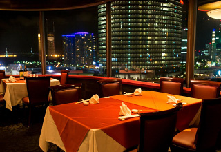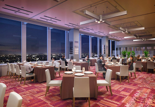 エレガントなダイニングから醸し出される上質のくつろぎとおもてなし。地上210mからの絶景で、最上級のひとときをお過ごしください。